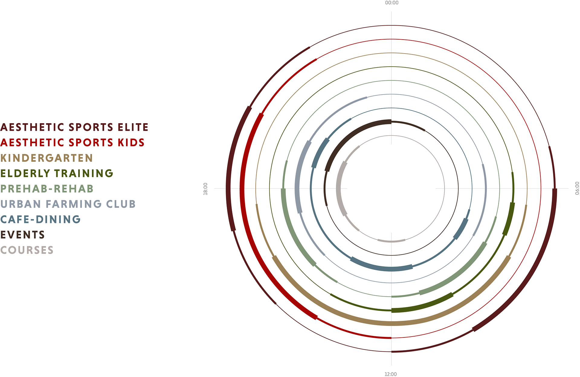 The diagram below illustrates how the areas can be used by different groups of people during the day. In a sustainable future, we have to utilize the area we already got in a greater and more creative way. Large complex buildings have the potential of gathering many different people of different ages and social backgrounds through shared spaces.