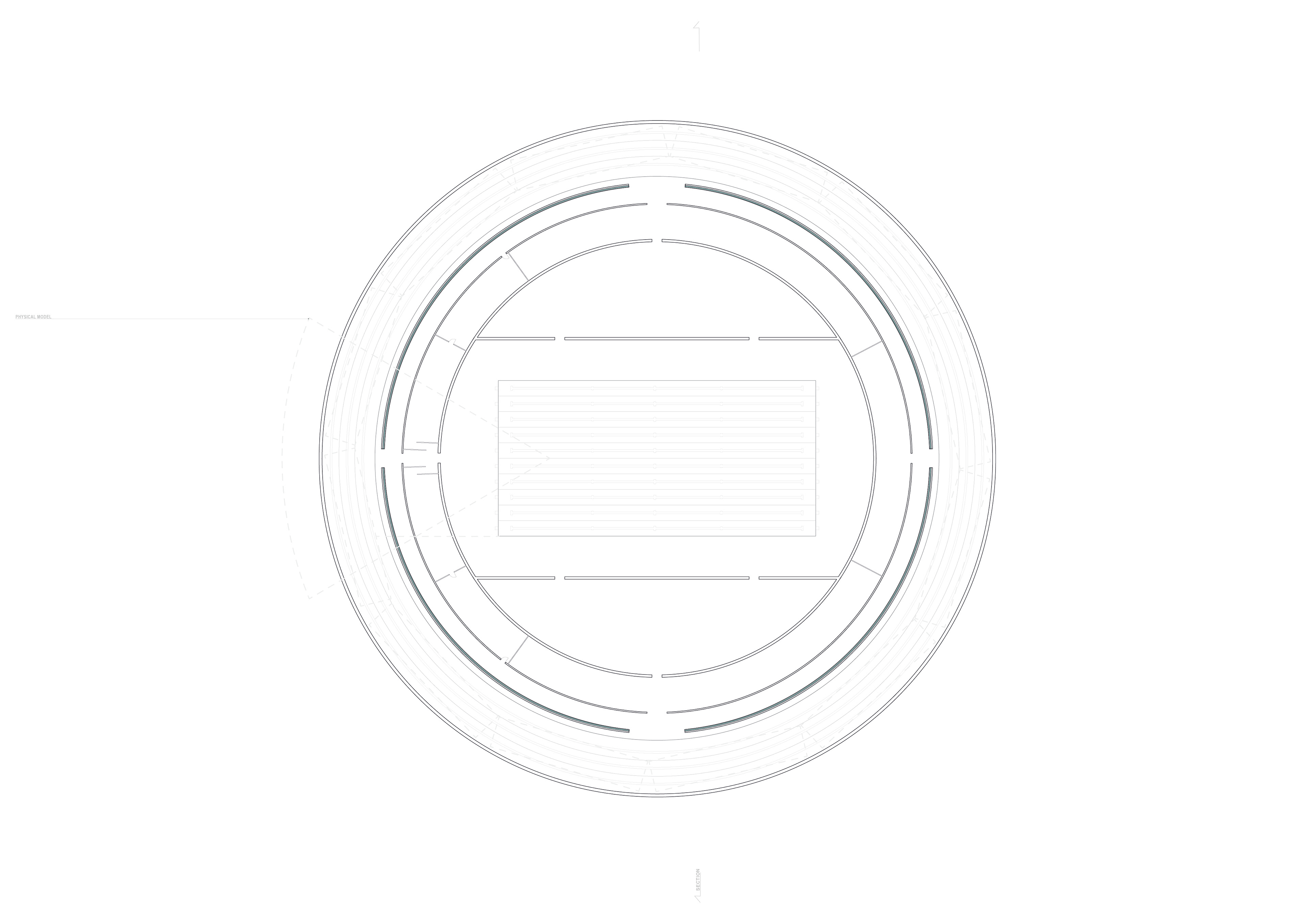 “Well Arena” is a swimming facility designed for both competitions and training. Its circular architecture naturally draws attention to the swimmers in the center. BAUX cladding seamlessly connects the roof to the pool level, creating a cohesive atmosphere throughout the space. The timber gridshell roof stands out, contrasting with the blue panels mounted behind it. A 300-meter-long pool is integrated into the curved outer walls, providing a warm-up area that evokes the feeling of swimming in open water. Similar to a well, rainwater is collected from the roof, filtered through glazed walls, and allows visitors to experience outdoor weather conditions and the water purification process.