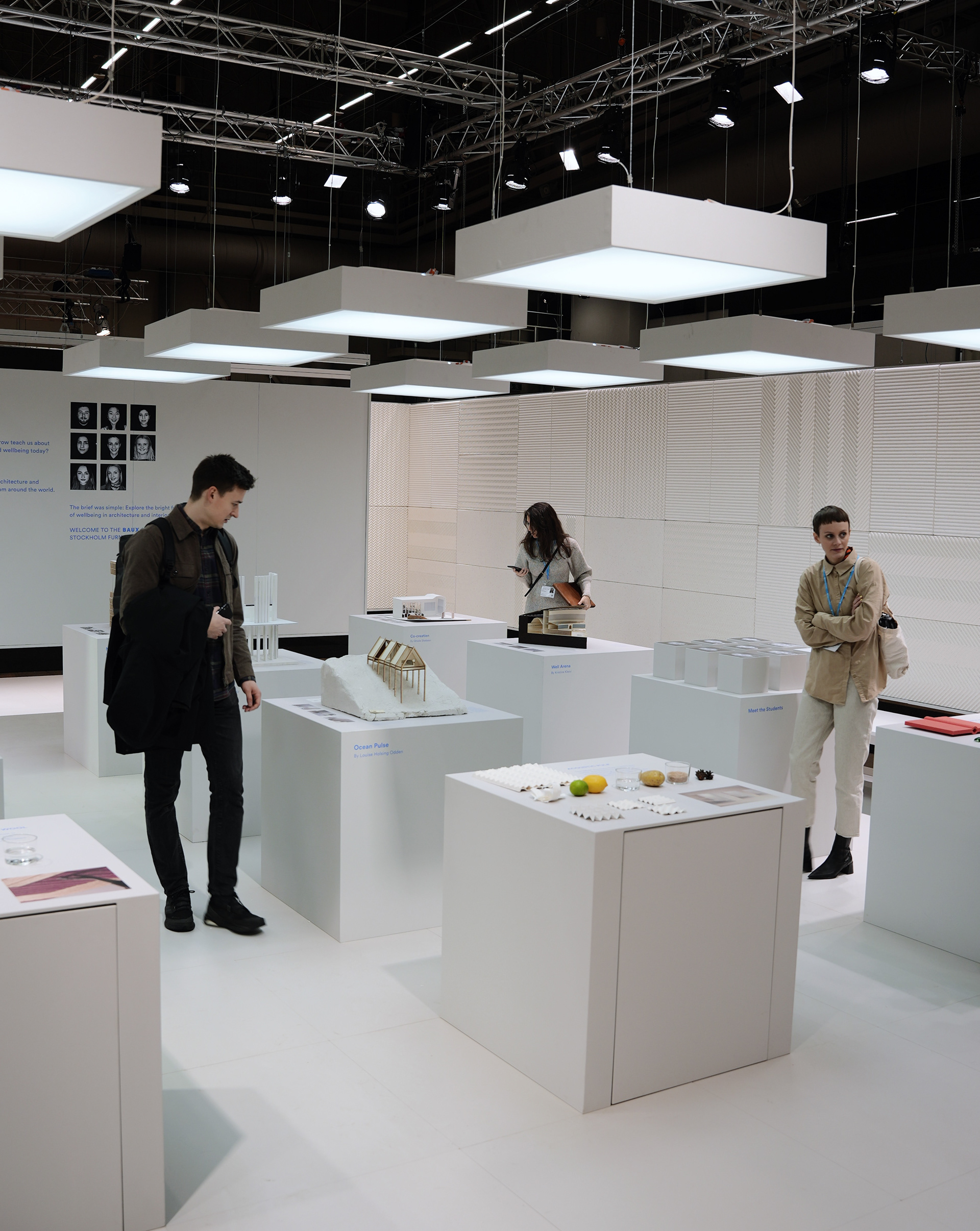 The Swedish acoustic panel brand BAUX invited eight architecture students to envision the future of well-being at their exhibition during the Stockholm Furniture Fair and Clerkenwell Design Week 2023.